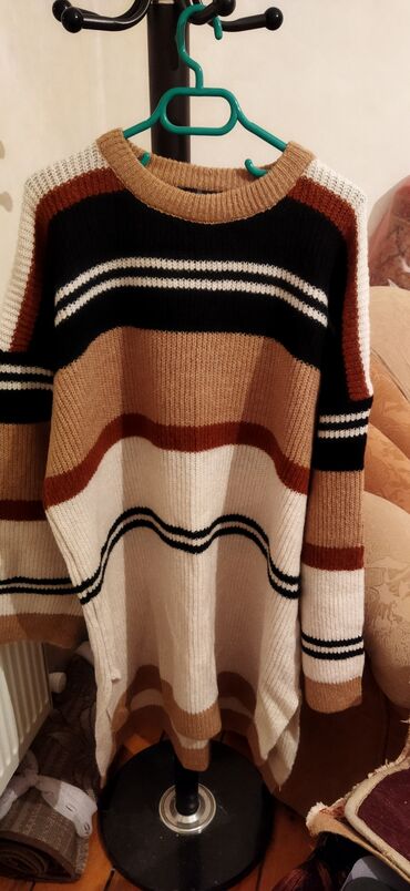 Zolaqlı trikotaj sviter - Model: dairəvi yaxalı, uzunqol - Naxış