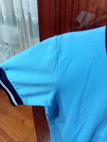 Mavi rəngli, uzunqol polo köynək. Qara və boz zolaqlarla bəzədilmiş