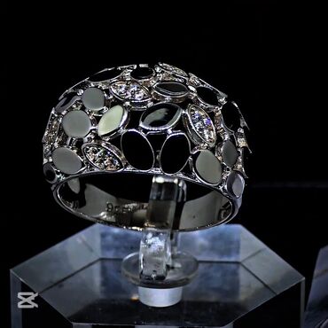 Uniseks – eksklüziv dizayn - Material: gümüş 925prob - Üst hissə: iri mərkəzi parlaq daş və onu çevrələyən çoxsaylı boyuk parlaq daşlar (brilliant kəsim effektli) - Dizayn: dairəvi başlıq üzərində...