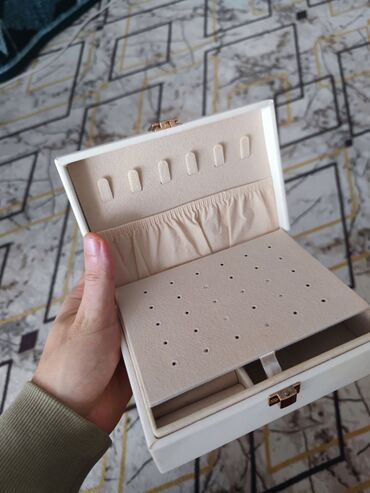 Zərgərlik və aksesuarların səliqəli saxlanması üçün nəzərdə tutulmuş ağ rəngli qutu. Qutu bir çox bölmələrə və siyirmələrə malikdir, bu da üzüklər, sırğalar, boyunbağılar və qolbaqlar üçün əlverişl...Giriş•Qeydiyyat