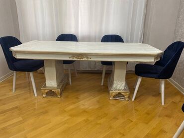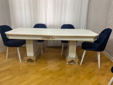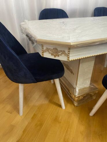 • Yumşaq mavi məxmər oturacaqları olan 6 rahat stul