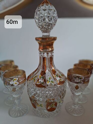Keçmişin xrustal, baha alınmış cehizlik dəsti. Parıldayır, defekti yoxdur. İçki içən olmayıb deyə istifadə olunmayıb. Real alıcılar buyura bilər.