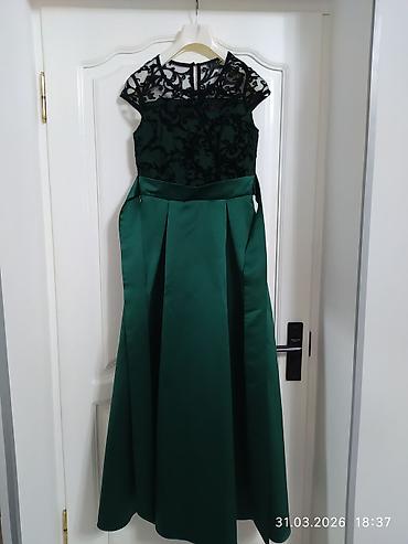 Rahat oturuş verən kəsim və parlaq atlas ətək kombinasiyası ilə dəbdəbəli görünüş yaradır. Ölcü 44