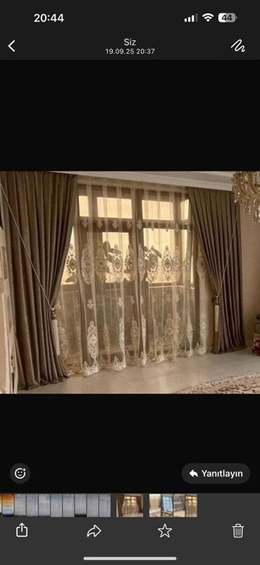 - Komplekt: İki tərəfli qalın pərdə panelləri + krujevalı tül; karnizə uyğun asma üslubu (qırçınlı).