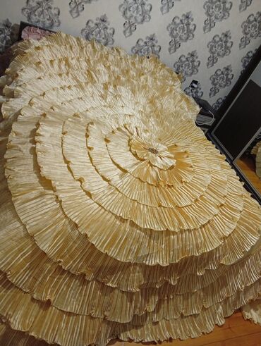 • 1 dekorativ kvadrat balış üzü – mərkəzdə bant-gül aplikasiyası. Pərdə üzlüyü ,tülü. Qızılı taxt üstlüyü üzərində hədiyyə verilir. Real alıcı narahat etsin.