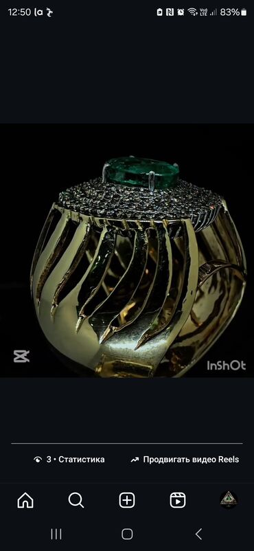 Bu əzəmətli "Zümrüd Qalası" üzüyü tək nüsxədə hazırlanıb və zərgərlik sənətinin nadir bir nümunəsidir. Rus qizil 585 (Brilliantların bərkidildiyi yuxarı hissə gumus 925prob) Ümumi çəkisi 18.02qr Te...