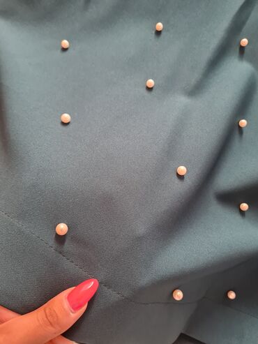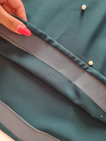 - Parça: Yumşaq, axan toxuma; üzərində bərabər məsafəli dekorativ mirvarilər (inci aplikasiyaları).