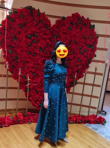 Zümrüd-yaşıl rəngdə, uzun və zərif ziyafət libası