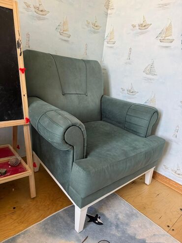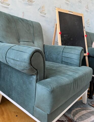 - Dizayn: Dərin kapitone arxa hissə, enli qoltuqlar; qol hissələrində dekorativ ağ xətt vurğusu