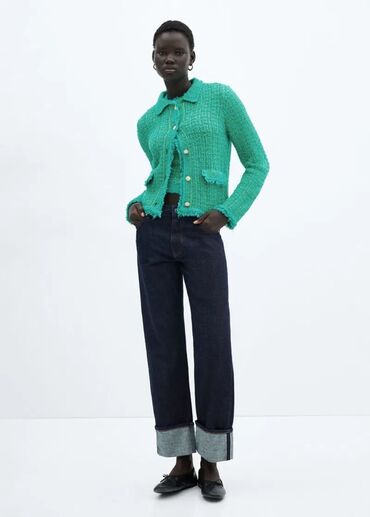 Mango.Yeni.Xs.Zümrüd-yaşıl tweed qadın kardiqanı