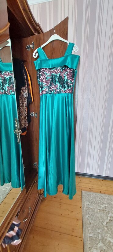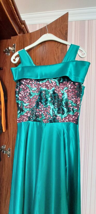 40 razmer Zümrüd-yaşıl rəngdə, uzun ziyafət/libas. Üst hissəsi V
