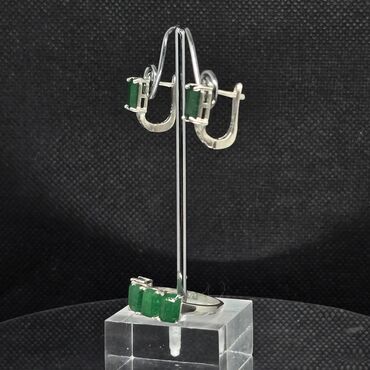 Tebii Hindistan Zümrüd qaşlı gümüş 925prob zərgərlik dəsti - Tərkib: sırğalar, kulon boyunbağ üzük - Metal: 925 əyarlı gümüş - Dizayn: çiçək motivli kompozisiya; marquise formalı yaşıl zümrüd da...