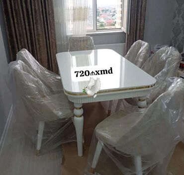 Qara metal çərçivəli və ağ oturacaqlı stullar. Bu stullar mətbəx, yemək otağı və ya ofis üçün idealdır. Stullar rahat və davamlıdır, uzun müddət istifadə üçün nəzərdə tutulub.