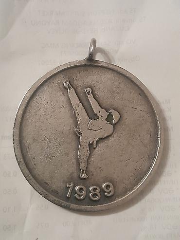 - Arxa tərəf: taekvondo/kick-boks üslubunda yüksək təpik vuran idmançı fiquru; aşağıda “1989” tarixi
