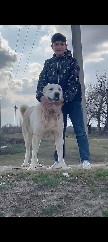 Məhsul: Alabay (Orta Asiya çoban iti) – erkək Xüsusiyyətlər: - Güclü bədən quruluşu, geniş döş qəfəsi və möhkəm pəncələr - Ağ rəngli xəz, baş və qulaq nahiyəsində tünd ləkələr - Hündürboy, iri ölç...
