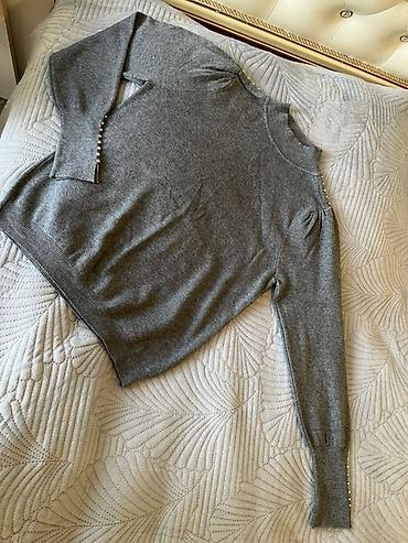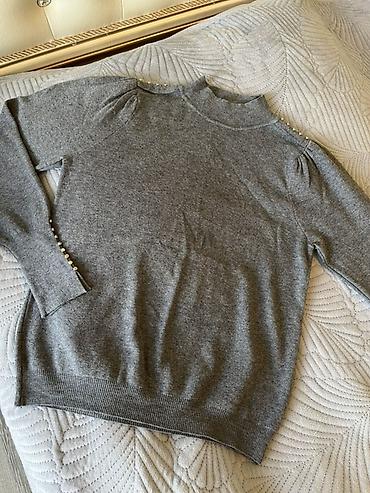 Boz rəngli qadın sviteri - Model: Uzunqollu, düz kəsim, elastik bel