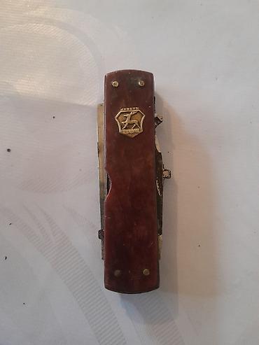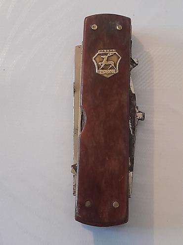 Çoxfunksiyalı qatlanan cib bıçağı - Korpus: taxta/taxta effekti olan qəhvəyi örtük, metal pərçimlərlə möhkəmləndirilib - Ön hissədə metal emblem: “Moscow” yazısı və qaçan maral təsviri olan nişan ...