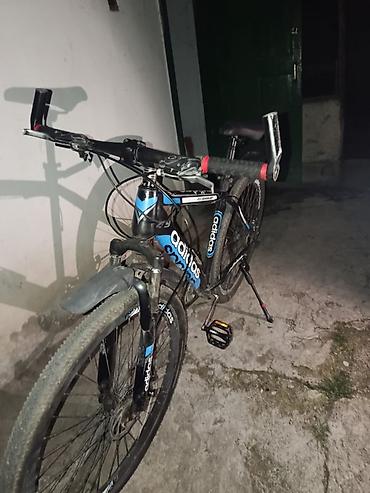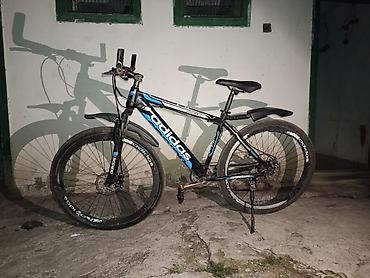 Dağ velosipedi – 29” təkərli, alüminium tipli çərçivə dizaynı. Rəng: qara-mavi ağ yazılarla.