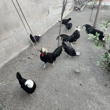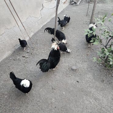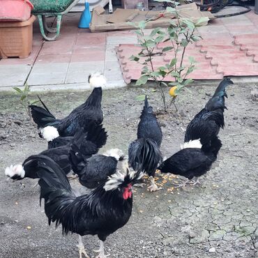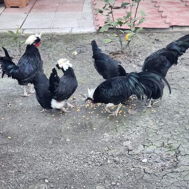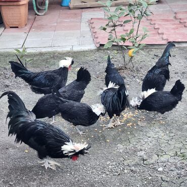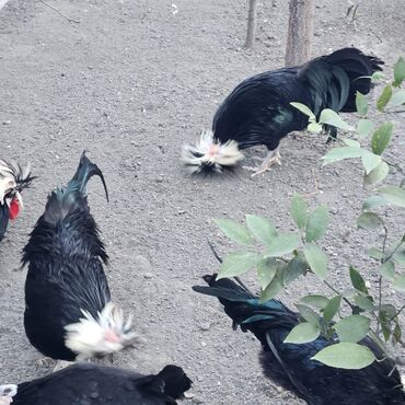 - Qara parlaq lələklər, başda iri ağ “tac”/puflu daraq – həyətdə çox gözəl dekorativ görünüş verir.