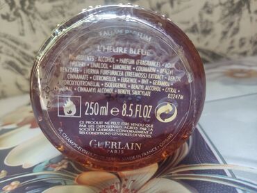 - Etiket və alt hissədə orijinal yazılar: “L’Heure Bleue – Eau de Parfum – 250 ml – Made in France”