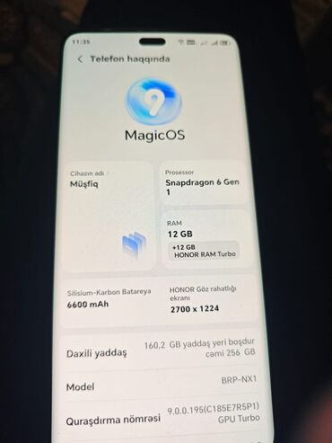 - RAM: 12 GB + HONOR RAM Turbo (əlavə 12 GB)