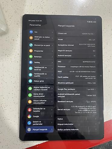 HONOR Pad X8a planşet Texniki xüsusiyyətlər: - Model: NDL-L09 (4G