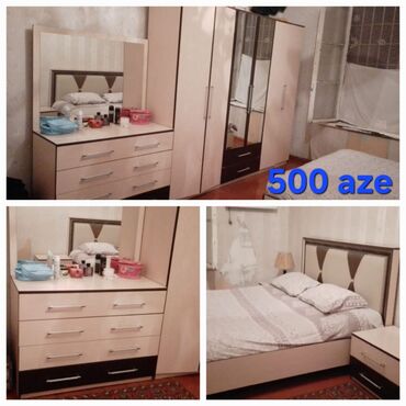 Yataq otağı mebel dəstləri 1) Dəst 1 – 650 ₼ - Ağ rəngli dəbli dizayn - Çarpayı (başlıq yumşaq panel) - 2 ədəd tumba - Paltar şkafı - Güzgülü komod 2) Milano dəsti – Qiymət 960 AZN - Ağ parlaq fa...
