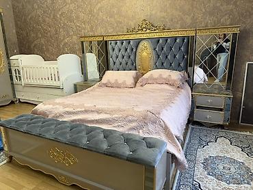 Yataq otağı dəstləri – Hazır fabrik istehsalı Tərkibi: - Çarpayı (matras hədiyyə) - 3 qapılı geyim dolabı (aynabəndli, alt çekmecəli) - Tumba(lar) - Komod və güzgü Xüsusiyyətlər: - Klassik və müa...