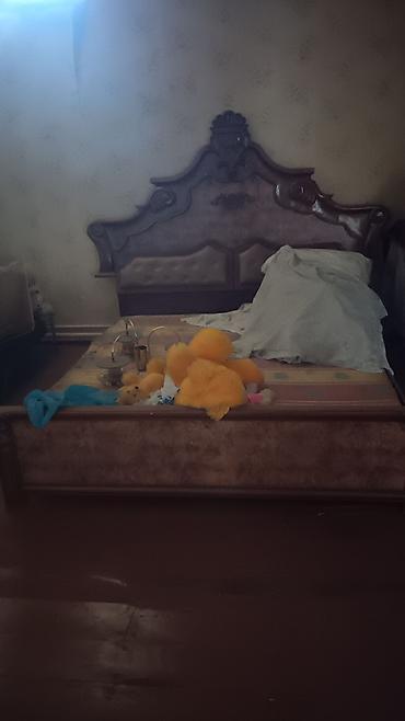 - İki nəfərlik çarpayı: yüksək oyma başlıqlı, yumşaq kapitone panelli, uyğun ayaqlıqla klassik dizayn.