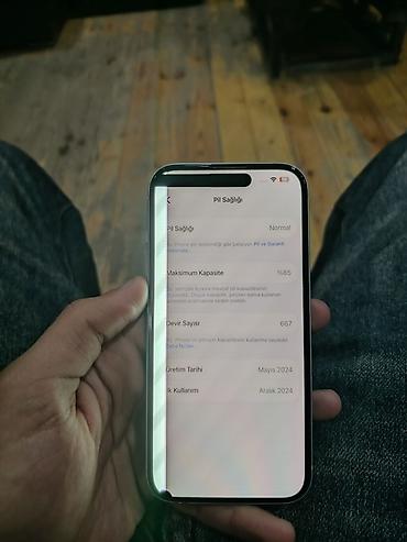 - Pil məlumatı ekranda: Maksimum tutum 85%, dövr sayı 667; istehsal tarixi: May 2024; ilk istifadə: Dekabr 2024 (ekran şəkillərində görünür)