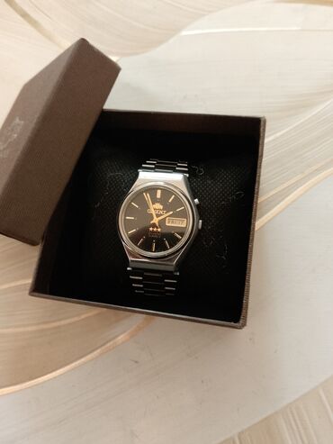 - Siferblat: Qara siferblat, qızılı rəngdə indeks və əqrəblər