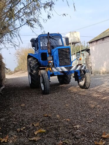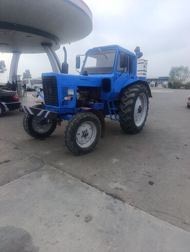 Mavi rəngdə təkərli kənd təsərrüfatı traktoru