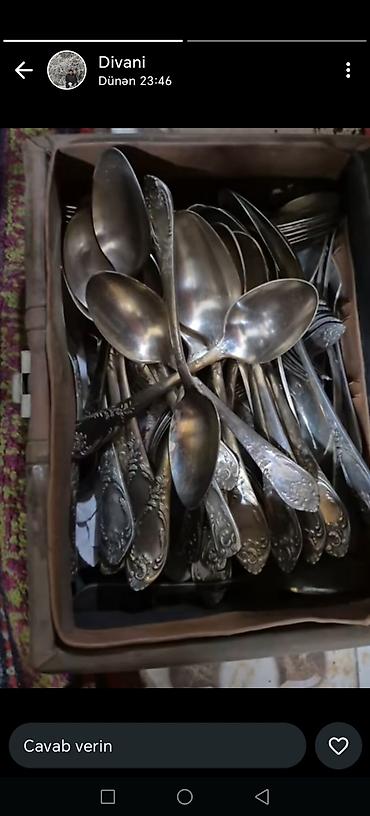 Gümüş suyunda qaşıqlar 20ci əsrin ortalarına aiddir. Bir dəstdə 6 ədəddir Təsvir: - Şəkillərdə bir neçə fərqli dizaynda klassi...