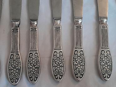 Məhsul: Klassik süfrə dəsti aksesuarlarırazilasma - 5 ədəd bıçaq: Üzərində naxışlı, ağır tutacaqlar, bıçaq hissəsi paslanmayan metal. Tutacaqlarda klassik ornamentlər və relyef işləmələr. Bıçaqla...