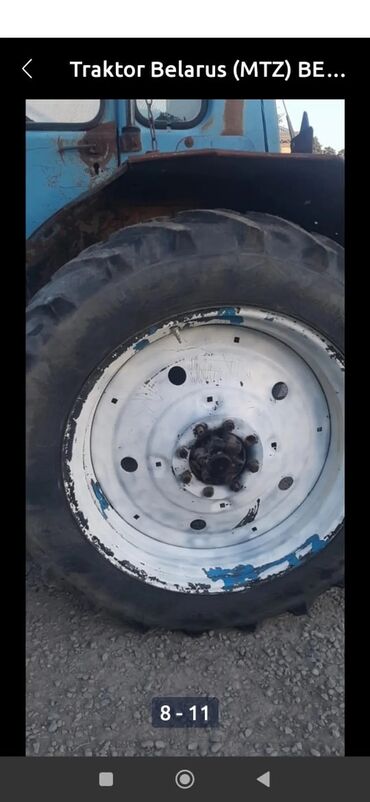 Traktor MTZ (Belarus) tipli, kabinəli, arxa iri protektor təkərlərlə.