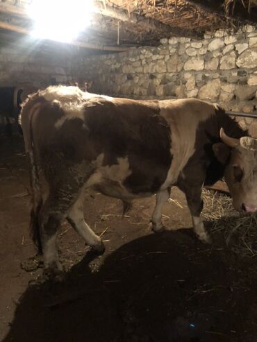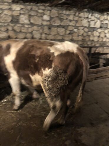 Qaramal – erkək mal-qara - Növ: iri buynuzlu heyvan - Cins: qara rəngdə, baş və ayaqlarda ağ ləkələr - Yaş: şəkilə əsasən gənc-döşəmə buynuzlu (təxmini buğa/erkək) - Saxlanma şəraiti: tövlədə bağl...