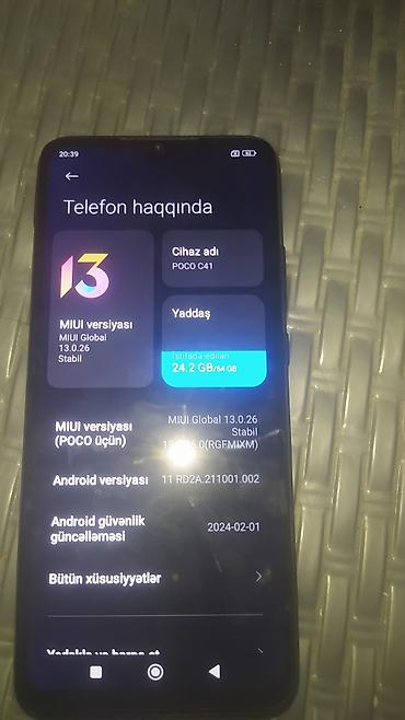 Poco C40, 32 GB, rəng - Gümüşü, Zəmanət, Sensor, Barmaq izi