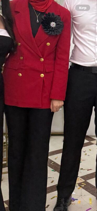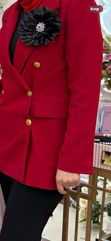 Qadın üçün qırmızı rəngli, ikiqat düyməli