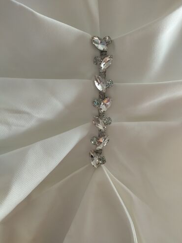 Cemi 1 defe geyilib, uzunluğu dizden gelir,realda çox gözeldir. Xladyden alınıb Qısa ağ qaşlı kokteyl/şənlik paltarı - Rəng: Ağ, gümüşü daş və qaşlarla bəzədilmiş - Üst hissə: Şirin-büst (sweethe...