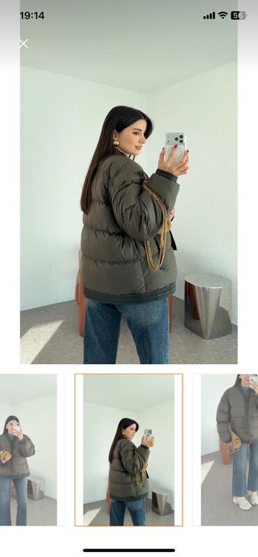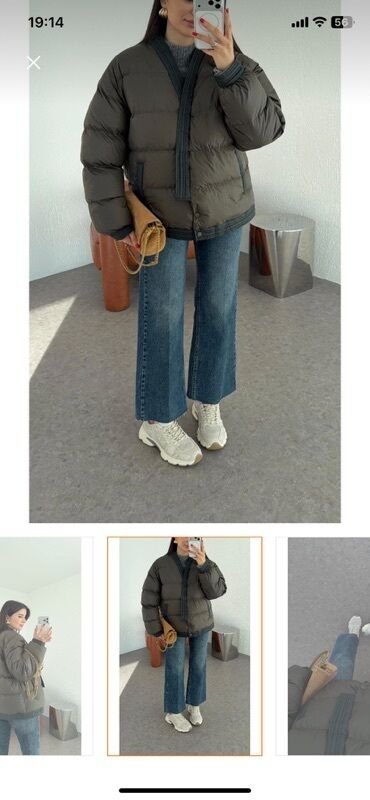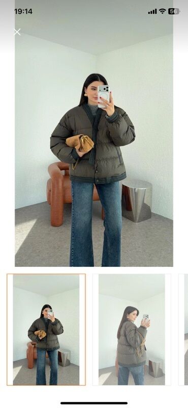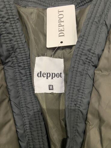 DEPPOT brendi qadın puffy gödəkçə - Model: V-yaxa, yaxa və ətək hissədə kontrast tünd boz haşiyələr - Rəng: zeytun-yaşıl (tünd boz detallarla) - Ölçü: M (etiket üzərində) - İstilik: qalın, yüngül ...