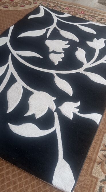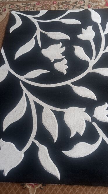 Qara-ağ dekorativ xalça - Dizayn: Qara fon üzərində ağ, böyük floral-naxışlı motivlər; müasir interyerlər üçün uyğun. - Forma və ölçü: Düzbucaqlı; oturma otağı, yataq otağı və dəhlizlərə uyğun ort...