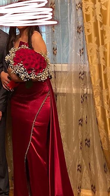 Qırmızı atlas gecə/libas - Rəng: dərin bordo (şərab qırmızısı) -
