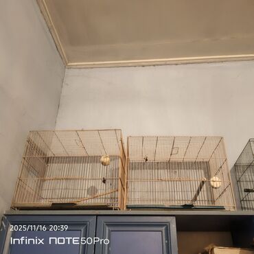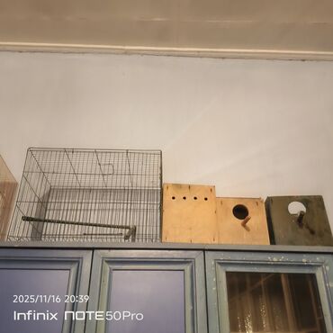 - Şəkillərdəki kimi müxtəlif ölçülərdə 3 metal qəfəs: hər birində yemlik/suluq yerləri, perch (oturacaq çubuqları) mövcuddur. Kvadrat formalı, üst hissəsi tel tor, yan tərəflər böyük qapılı.