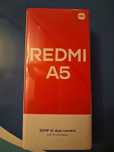 Məhsul: Xiaomi Redmi A5 (qutusu ilə) CEMİ 1AY 12 GUN İŞLƏNİLİB Xüsusiyyətlər: - 6.88" (17.47 sm) displey - 32 MP AI dual kamera (arka ikili modul) - Arxa paneldə LED fləş - “AI Camera” yazılı oval...