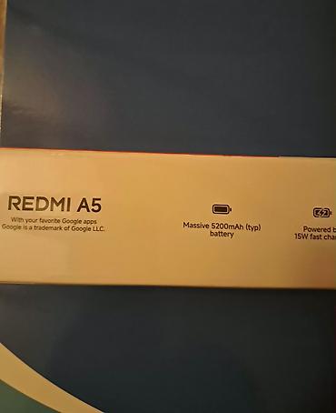 Xiaomi Redmi A5 smartphone CEMİ 1AY 13 GUN İŞLƏNİLİB Xüsusiyyətlər: - Ekran: 6.52" (təxmini, qutudakı 6.52"/16.40 sm qeydinə əsasən), ön kamera deşikli dizayn. - Arxa kamera bloku: ikiqat kamera ...
