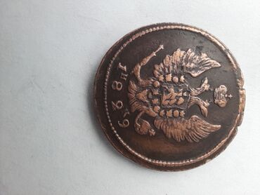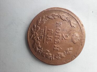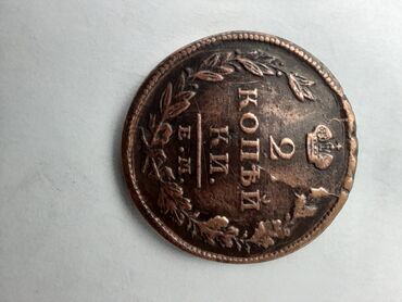 - 2 kopyeyka, 1814 il. Üz tərəfində “2 копейки” və aşağıda zərbxana işarəsi “Е.М.”; arxa tərəfində iki başlı qartal gerbi və “1814” tarixi. Mis tərkibli.