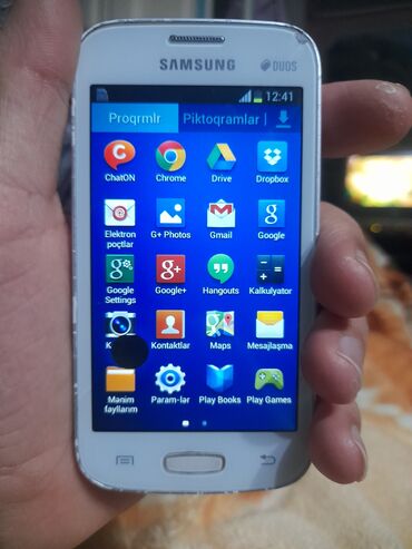 Samsung smartfon her bir seyi islekdi bateriya teze deyşilib tek telfundu vapcat desleyleyir - Model: Samsung Galaxy (klassik dizayn, ağ rəng) - Ekran: təxminən 4–4.3 düym toxunma ekran, ön kamera...