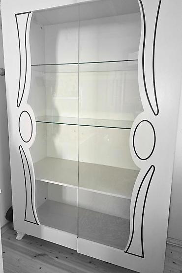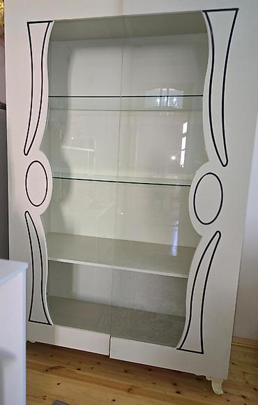 Şüşə vitrin/dolap - Material: möhkəm korpus, ön hissə tam şüşə sürgülü qapılar - Rəf sistemi: 3 ədəd geniş şüşə rəf + alt hissədə əlavə bölmə - Dizayn: klassik üslub, dekorativ qızılı ornamentlər ...