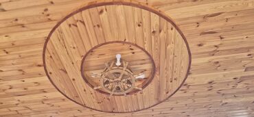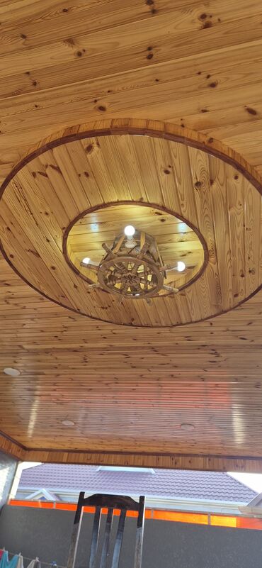 - Montaj: tavana quraşdırma üçün hazır baza; dairəvi taxta dekor halqası ilə birlikdə tavan kompozisiyası yaradır.