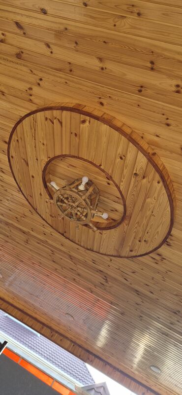 - Material: tamamilə ağacdan hazırlanmış dekorativ korpus, taxta panellə örtülü tavana uyğun dizayn.